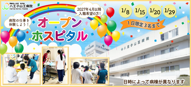 八王子山王病院は、職員一人ひとりが各々の専門性を発揮し、互いの立場を尊重し合いながら連携するチーム医療に取り組んでいます。当院の理念である「思いやりのある あたたかい医療」を実践し、地域医療を支える病院職員として一緒に働いてみませんか。