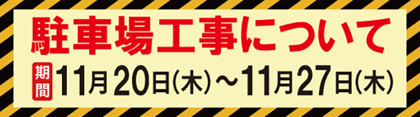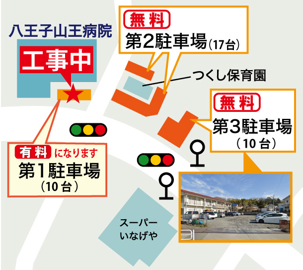 工事期間中は第1駐車場はご利用になれません。第2・第3駐車場をご利用ください。